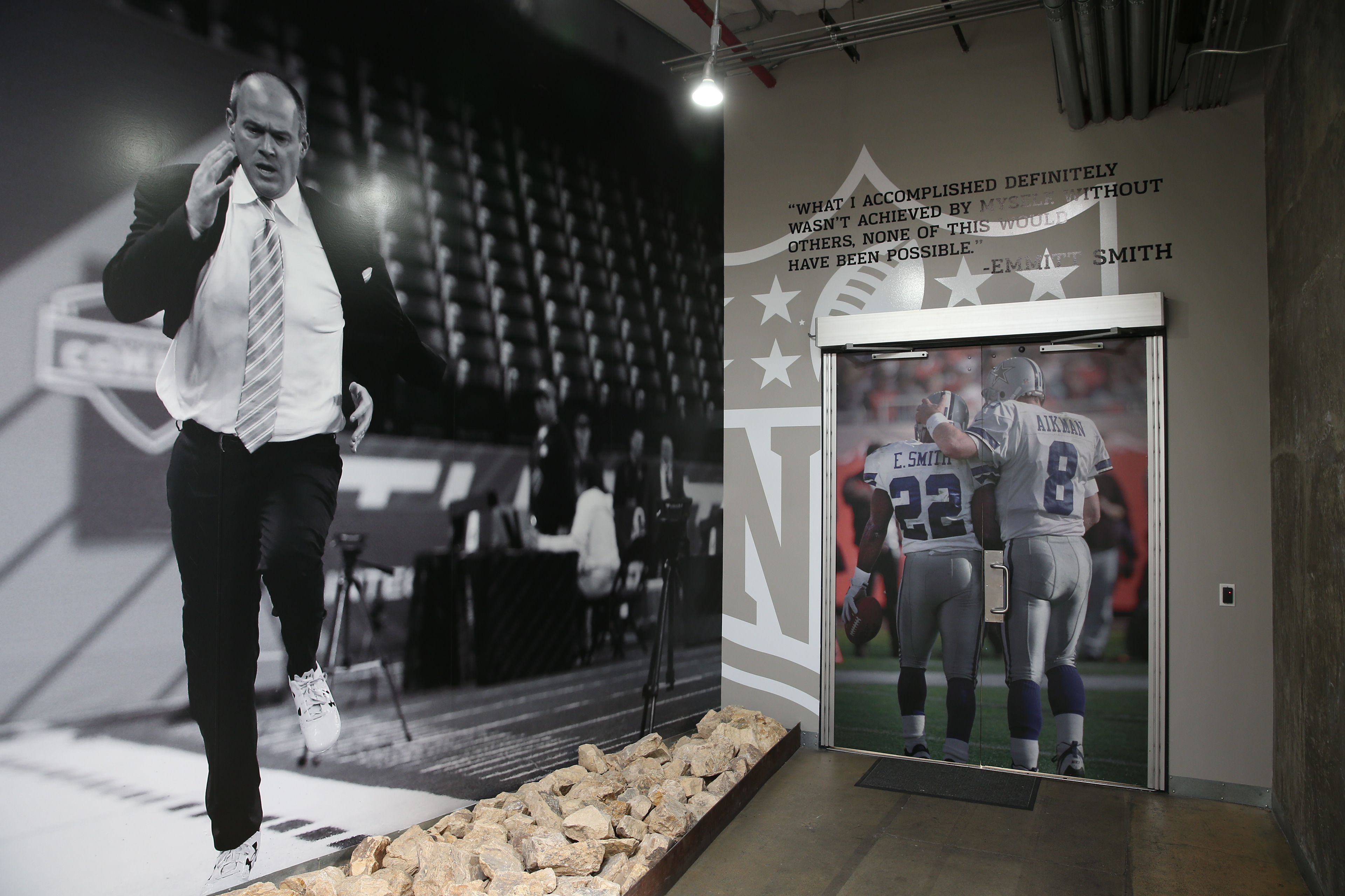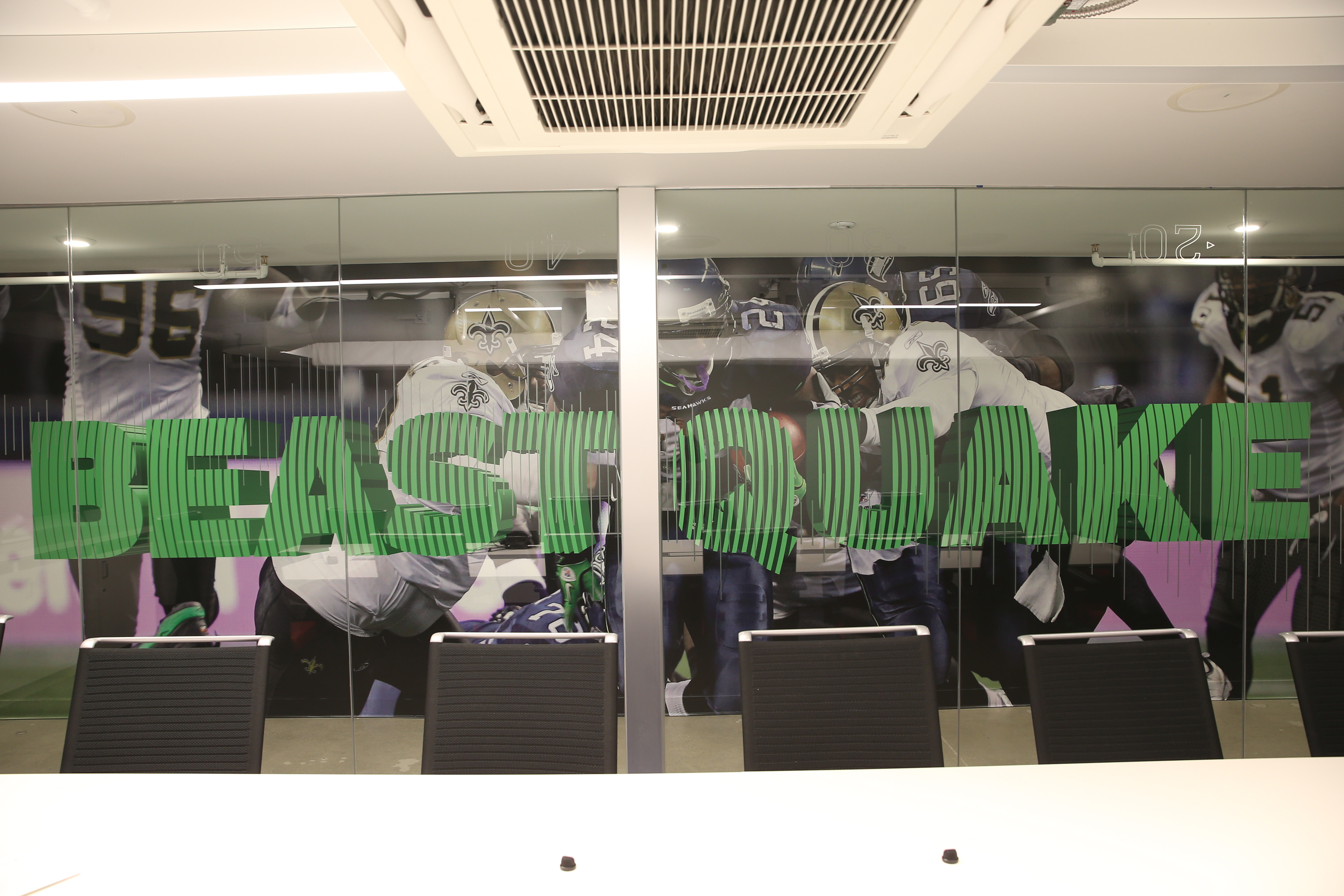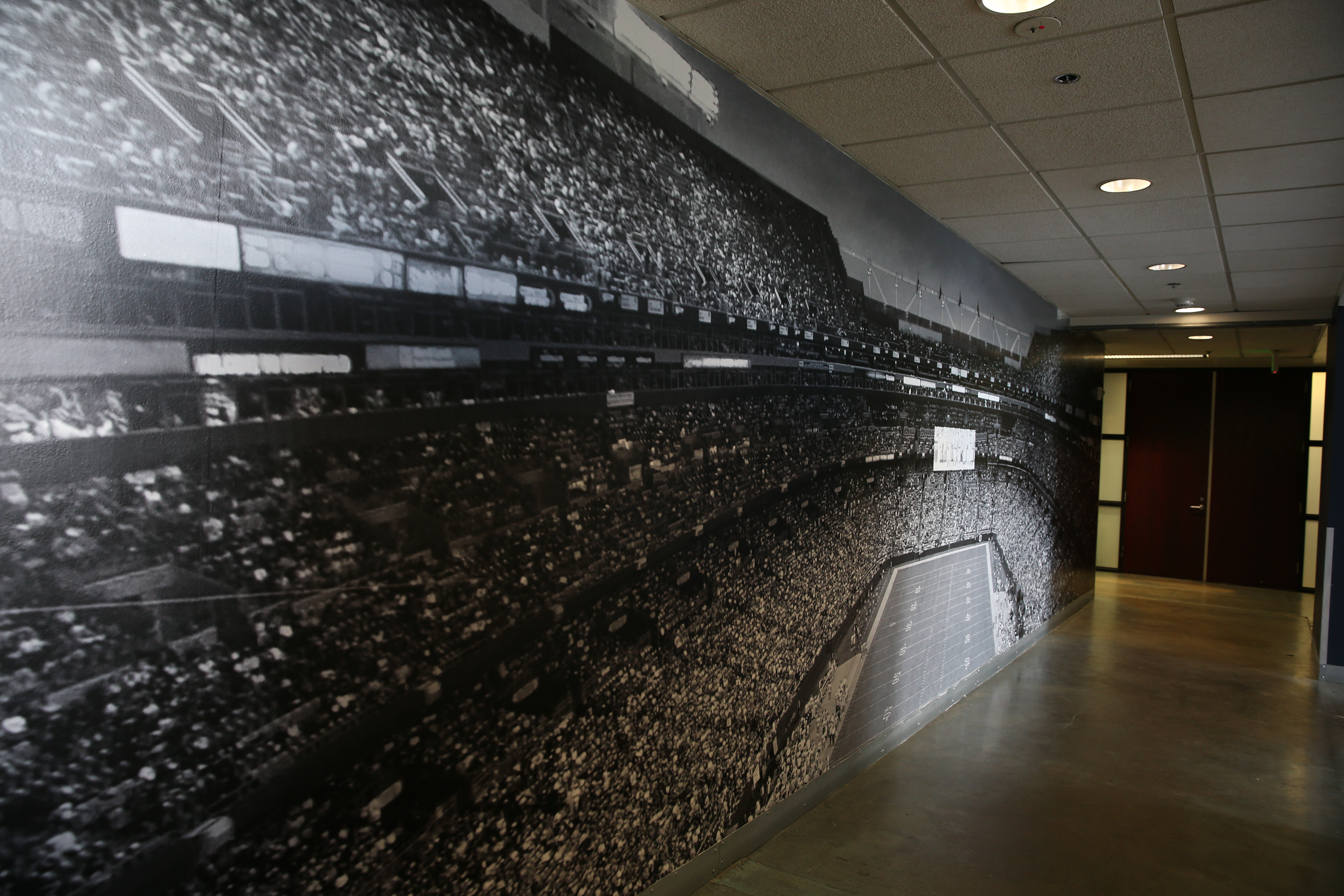 As the office building began aging and some new life was needed to show that we are truly stewards of football, we began a beautification project. This included artwork for conference rooms, interior and exterior signage and way-finding for common spaces, wall wraps, custom furniture and more.